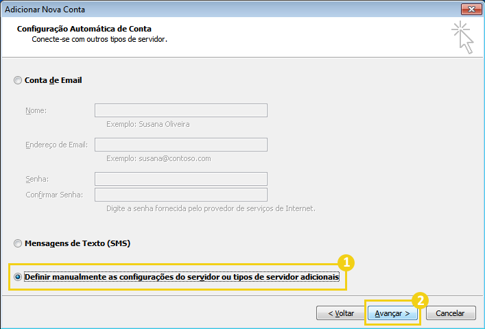 Selecione a opção Definir manualmente as configurações do servidor ou tipos de servidores adicionais e clique em Avançar:
