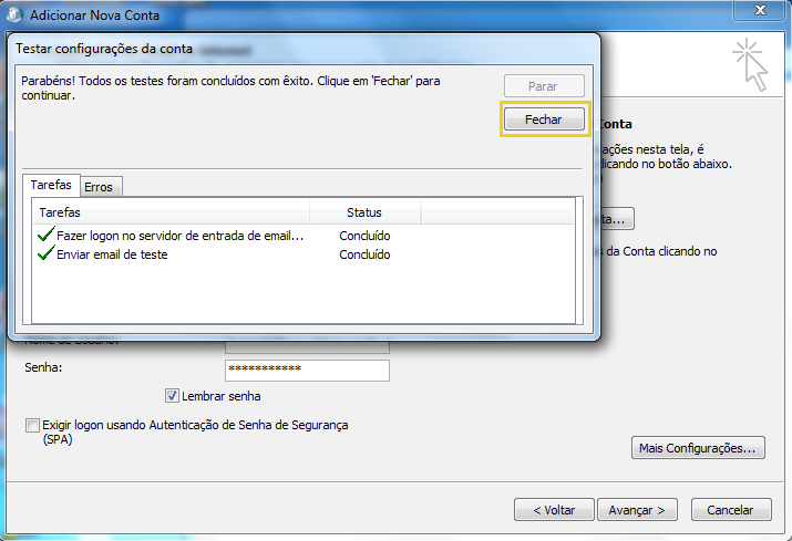 Ao finalizar, clique em Fechar